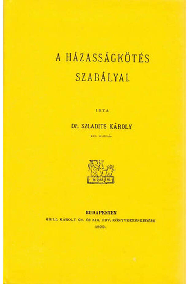 Szladits Károly jogtudós, a magánjog meghatározó alakja ebben a kötetben a házasságkötések jogi hátteret vizsgálja a korabeli magyar joggyakorlatban. írta Szladits Károly. Budapest : Grill Károly, 1899.