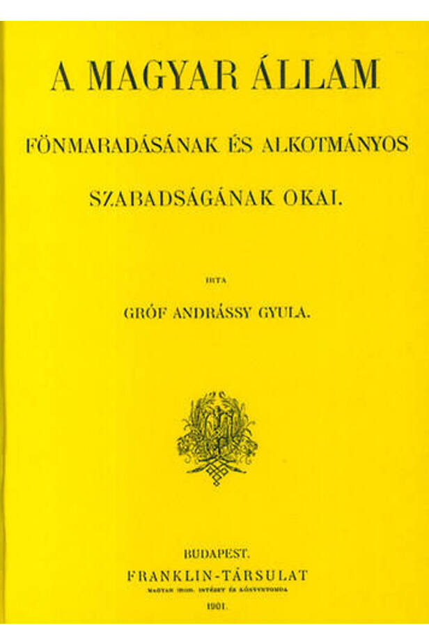 írta Andrássy Gyula. - Budapest : Franklin-Társulat, 1901. Andrássy Gyula háromkötetes műve, az államalapítás korától a 19. század végéig tárgyalja a magyar állam és nemzet alkotmányos berendezkedésének történetét. Hasonmás kiadás.