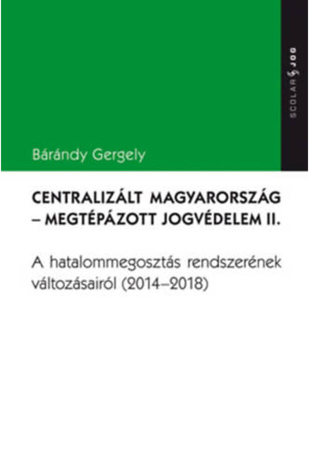 Dr. Bárándy Gergely könyve a Centralizált Magyarország - megtépázott jogvédelem című monográfiájának folytatása, kiegészítése a 2014 és 2018 között megvalósított közjogi átalakítások dokumentálásával és elemzésével. "Vajon a rendszer mérvadó újításai szolgálták-e valamelyik politikai oldal érdekeit, és ha igen, melyikét?"
