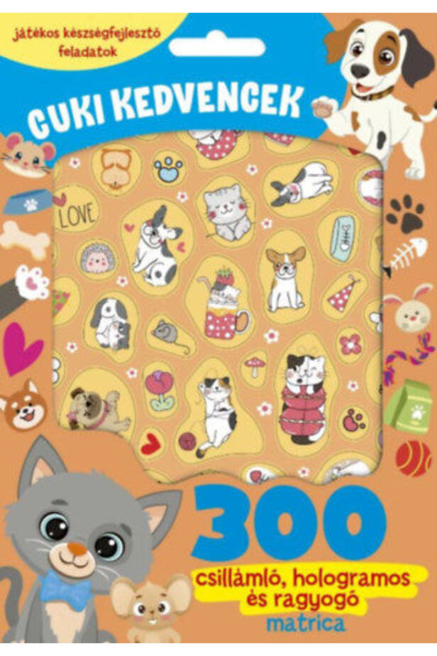Ismerd meg a legaranyosabb kisállatokat játékos feladatokon, színezőkön és rejtvényeken keresztül! A 300 csillámló, hologramos és ragyogó matrica még varázslatosabbá és színesebbé teszi a kalandot. A Cuki kedvencek foglalkoztató tökéletes választás minden kisállat-rajongónak, aki szeret játszva tanulni és alkotni!