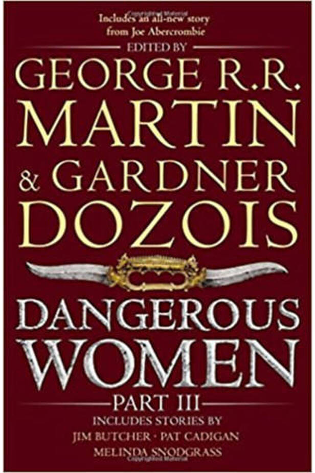 Dangerous Women Vol. 3, edited by George R. R. Martin and Gardner Dozois, includes stories by Sherrilyn Kenyon, Joe Abercrombie, Diana Rowland, Melinda Snodgrass, and Pat Cadigan, and features an entirely new 18,000-word novella by New York Times bestselling author Brandon Sanderson, and a new story of Harry Dresden's world by bestselling author Jim Butcher.