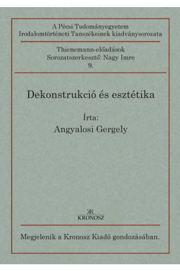 Angyalosi Gergely irodalomtörténész, kritikus, a Debreceni Egyetem Filozófia Intézetének professzora. A dekonstrukció és az esztétika viszonyával foglalkozó könyvében arra hívja fel a figyelmet: ha a dekonstrukció "esztétikájáról" beszélünk, szem előtt kell tartanunk, hogy Derrida sohasem írt olyan értekezést, amelyben összefoglalta volna a szépről vagy a műalkotások mibenlétéről szóló nézeteit. Ezzel szemben számos könyvében, konferencia-előadásában, interjújában érintette az esztétika klasszikus kérdéseit. Ezekben a szövegekben sohasem frontálisan vagy tematikusan tárgyalja az esztétikai problémákat, hanem kerülő úton, eltérítve azokat a tradicionális gondolati ösvényekről, sokféle, egymástól különböző és disszemináló gesztusok révén, amelyekkel folyamatosan dekonstruálja az esztétika tradicionálisnak tekinthető kategóriáját. Az esztétika hagyományos fogalmának dekonstrukciójából azonban nem következik, hogy egységes és áttekinthető, valamint mindenki számára "alkalmazható" esztétikai szemlélet jön létre. A dekonstrukció Derrida szerint esemény. Nem "valaki" csinálja, hanem történik, ha az olvasó aktív részvételével is. Nem olyan technika vagy alkalmazás, amelyet el lehet sajátítani, majd más területeken felhasználni. A filozófus esztétikai tárgyú írásai közül a könyv elsősorban azokat emeli ki, amelyek az irodalmat érintik. Egy-egy fejezet erejéig azonban szükségképpen utalnia kell a vizuális művészetekre és az építészetre vonatkozó írásokra is, érzékeltetve, hogy mégis csak annak a szemléletmódnak a teljessége a tét, amelyet a 18. század közepe óta "esztétikának" nevezünk.
