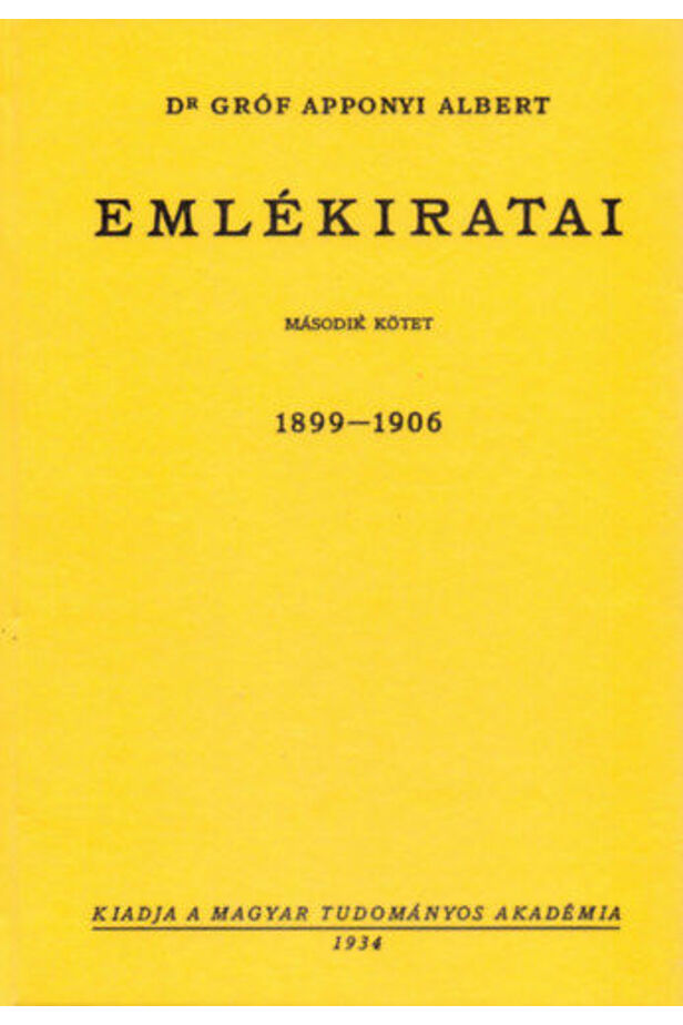 Count György Gyula Gyula György Apponyi of Nagyappony (Vienna, May 29, 1846 [1] - Geneva, February 7, 1933) President of the St. Stephen's Academy. Representative of the city of Jászberény with a gold mandate. My real goal is to provide data for the philosophy of the history of this remarkable era and thus useful guidelines for the future. Prior to this goal, autobiographical considerations take precedence, although I do not deny it, I also strive to place the memory of my own public activity, without covering up the mistakes and even embossing the main ones, in the lighting it deserves and entitles it to the hope of fairness. leaving a name for posterity, I thought, when I wrote these lines in late 1918. Budapest 1899-1906 Hungarian Academy of Sciences, 1934 - Similar edition Históriaantik Könyvesház Kiadó.