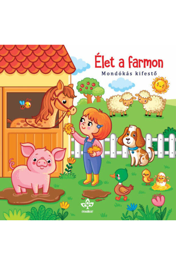 A ház körül élő állatok a gyerekek kedvencei, a cica a verandáról, a boci, kecske, ló a gazdasági udvarról, a liba, kacsa a közeli tavacskáról vagy a malacok, bárányok az ólból, akolból. A kisgyerek már majdnem mindnek ismeri a hangját, nevét, tud róla pár jellemző dolgot. Most mondókákat eleveníttetünk fel az állatok kapcsán, hogy még jobban szórakozhassanak a kis színezők. A kedves, derűs illusztrációkat minta alapján vagy képzeletből lehet kifesteni. Eközben fejlődik a kézügyesség, a figyelem, a kreativitás, ritmusérzék és a nyelvi készségek is. A grafomotoros és nyelvi készségek erősödnek, a szókincs gazdagodik. A középső oldalakon életkép jelenik meg a farmról, kérlek, meséljétek el, mit láttok rajta!