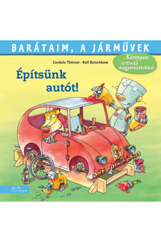 Ottó és Dübel, a két furfangos robot autót szeretne építeni. Hogy kell kinéznie egy autónak? Mitől forognak a kerekek? És mi is az a négyütemű motor? Ez a kedves történet a bonyolult technikai dolgokat is érthetően meséli el a gyermekek számára.