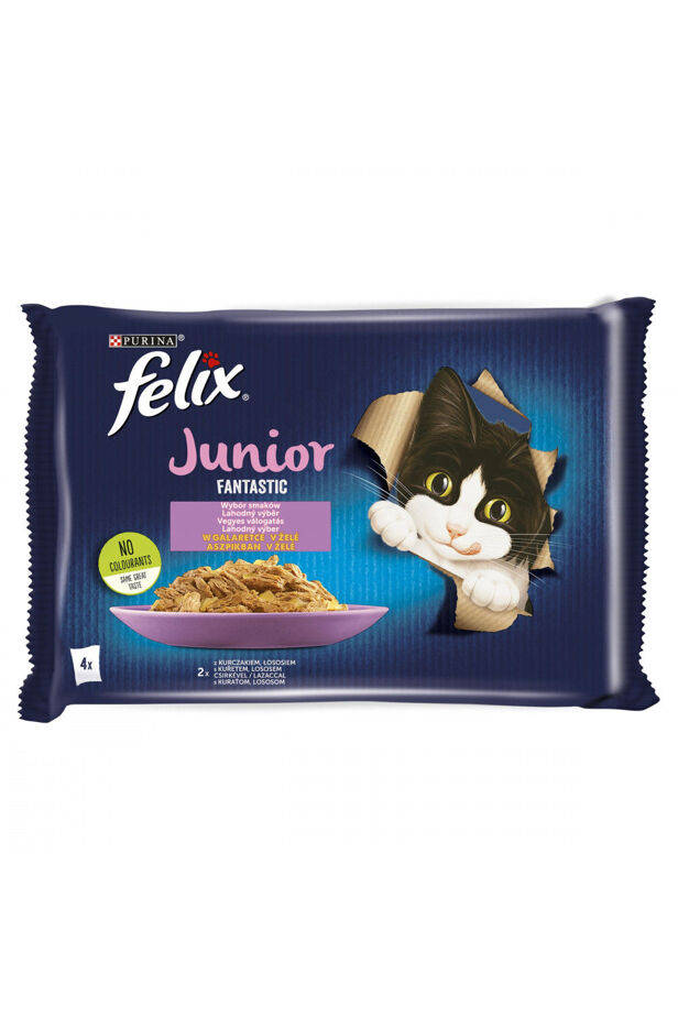 FELIX FANTASTIC Junior Wet cat food with chicken / salmon in aspic 4x85g