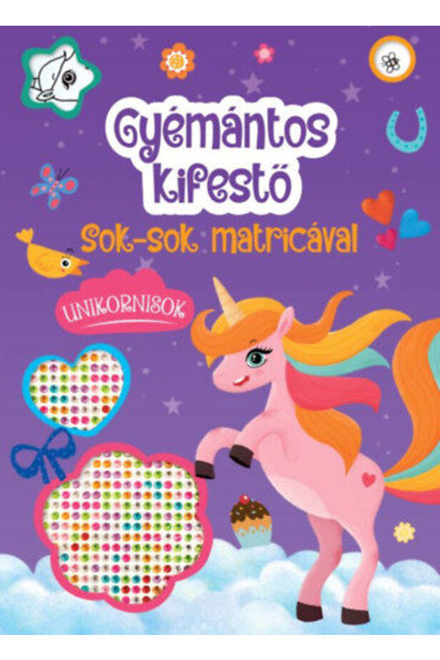 Merülj el az unikornisok varázslatos világában, és díszítsd ki saját csillogó mesevilágodat! A Gyémántos kifestő - Unikornisok egy különleges kreatív foglalkoztató, amelyben a gyerekek nemcsak kiszínezhetik a mesebeli unikornisokat, hanem csillogó matricákkal is feldíszíthetik őket. Ez a könyv tökéletes választás minden kis művész számára, aki szereti a színeket, a csillogást és a kreatív alkotás örömét.
