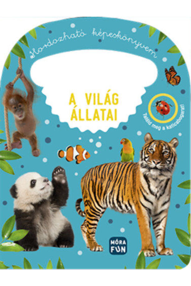 A fáradhatatlan csöppségek kedvence lesz ez a kis méretű képeskönyv, amelyet a fülénél fogva bárhová magukkal vihetnek. Amíg a kicsik a katicabogarat keresik a színes képek között, felfedezik a világ állatait is.