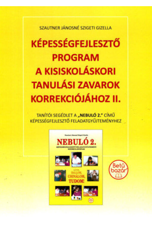 A másodikosok számára készített, tanmenetszerűen alkalmazható fejlesztő program formailag és tartalmilag az elsős programra épül. A kiadvány tartalmaz egy — Tanulási zavarok megjelenési formái, pszichológiai okai és korrekciója című — táblázatot, amely segíti a szakembereket az egyéni fejlesztőtevékenység meg-tervezésében.Harminc oldalas melléklete átmásolva fóliára szemléltetőeszközként használható a fejlesztő foglalkozásokon, de többségük alkalmazható feladatlapként a tanórai munkában is. A módszertani ajánlásokban a feladatok és a gyakorlatok megvalósítását segítő útmutatások mellett megtalálható az egyes tevékenységi formák közvetlen fejlesztő hatásának megnevezése. Itt található egy — gyakorláshoz javasolt — szójegyzék is a helyesírási készség megalapozására. A függelékben lévő képességvizsgálati és pedagógiai mérőlapok a fejlesztés hatékonyságáról, a tananyag elsajátításának szintjéről adnak tájékoztatást. A program megvalósítását segíti a Nebuló 2 képességfejlesztő feladatgyűjtemény, tanulói segédlet. A másodikos fejlesztő program több éves alkalmazása során bebizonyította, hogy jelentősen segíti az alap-készségek elsajátításához nélkülözhetetlenül szükséges képességek fejlődését, a tananyag könnyebb megérté-sét, elsajátítását.