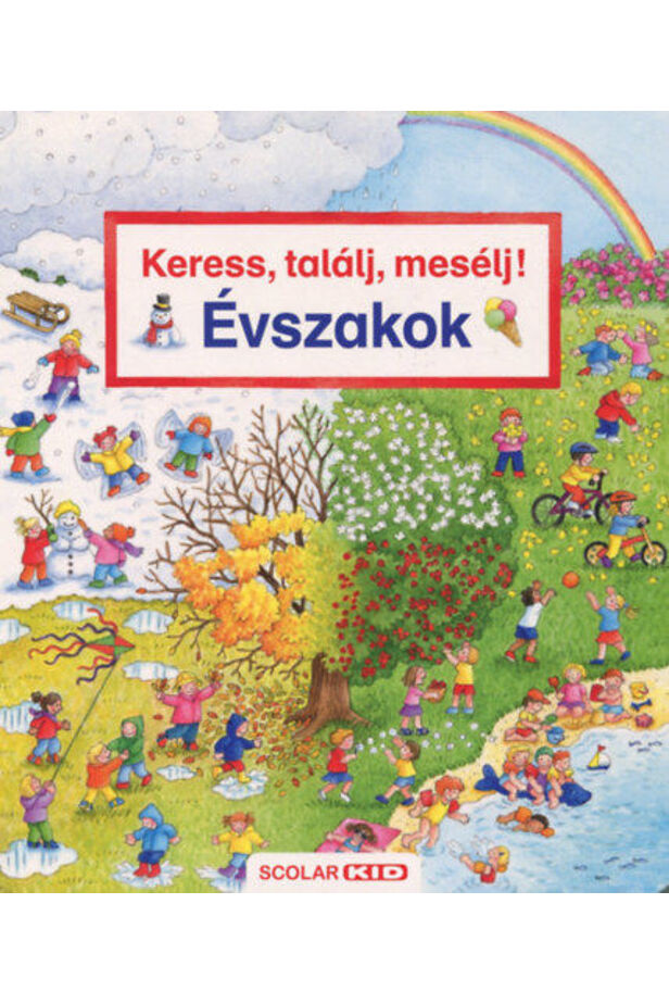 Tulipán, húsvéti tojás, színes napernyő, papírsárkány, gesztenye, töklámpás, szánkó, adventi koszorú, korcsolya - melyik évszak jut eszedbe róluk? A képeskönyv tizenegy nagy, részletgazdag képén megannyi érdekes dolgot fedezhetnek fel a kíváncsi apróságok. A többi Keress, találj, mesélj! könyvhöz hasonlóan minden oldalpár szélén kiemeltünk néhány tárgyat vagy élőlényt, melyeket a gyerekek megkereshetnek az adott oldalpár nagyméretű képén.