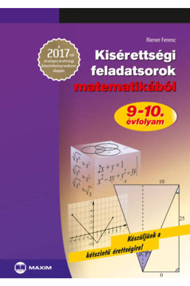 A 2017. január 1-jén életbe lépett új érettségi követelményrendszer alapján átdolgozott kötetünk segít a diákoknak eldönteni, hogy 11. évfolyamon emelt vagy középszinten folytassák-e tanulmányaikat matematikából. A kötetben tizenkét, a középszintű érettségihez hasonló felépítésű feladatsor található, amelyek a 9. és a 10. évfolyam tananyagát ölelik fel, valamint kiegészül egy olyan emelt szintű feladatokat tartalmazó résszel, amely példáinak megoldásával a tehetségesebb diákok is próbálkozhatnak. A könyv a feladatok részletes, magyarázatokkal bővített megoldásai mellett tartalmaz egy módszertani bevezetőt, ezáltal önálló tanulásra is alkalmas. A kiadványt ajánljuk iskolai vagy otthoni gyakorláshoz és ellenőrzéshez egyaránt, illetve azoknak a pedagógusoknak is, akik szeretnék felmérni az általuk oktatott osztályok tudásszintjét.