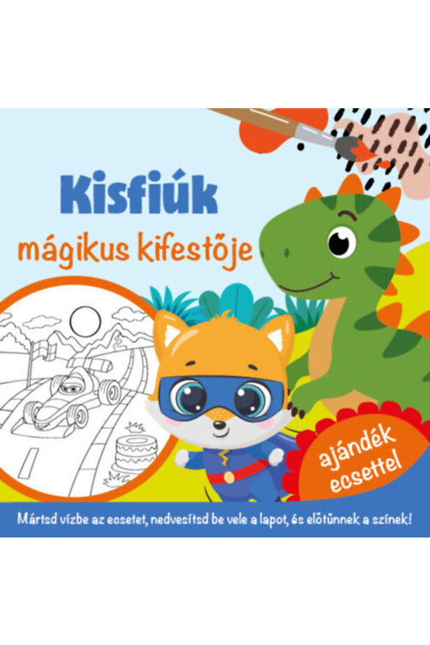 Csak egy kis víz és máris életre kelnek a képek! A Kisfiúk mágikus kifestője izgalmas jeleneteket rejt, melyek a vizes ecsettel való átfestés után színes formában bukkannak elő. Nincs szükség festékre vagy koszra - csak ecsetre, amit ajándékba adunk a könyv mellé! Tökéletes választás minden kíváncsi kis felfedezőnek.