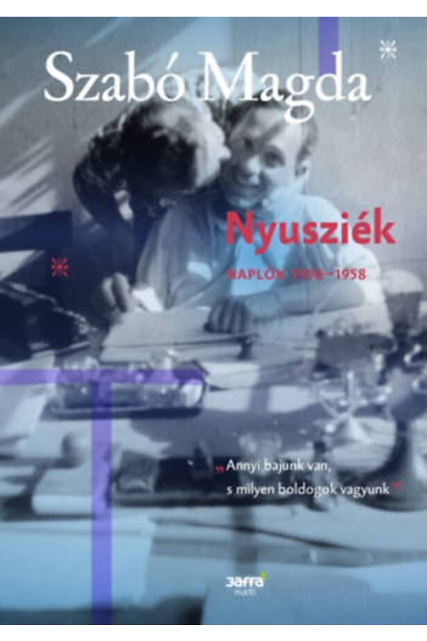 Vonalas irka, rajta a cím: Nyusziék I. Ilyen közönséges iskolai füzetekbe írta Szabó Magda 1950 és 1958 között most felfedezett és még soha nem publikált naplóit, férje, Szobotka Tibor és önmaga számára, hogy ne felejtse el napjaikat, az együtt töltött boldog pillanatokat: ,,Mindennap írnom kellene ebbe a füzetbe, rögzítenem a mosolyodat, a szádat, szavaid, az ölelésedet."
