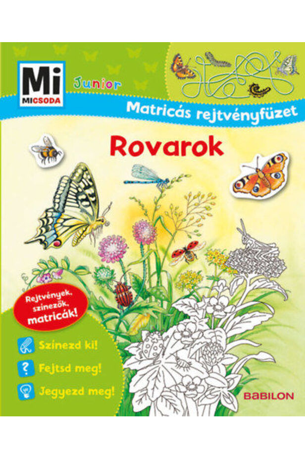 villogtasd tudásod a hatlábúakról! Fess fekete pöttyöket a katicabogár hátára, álmodd mg a saját pillangódat és találd ki melyik lepke röppen az éj leple alatt! Kiszínezhető képek, furfangos rejtvények és játékötletek, többször beragasztható matricák, vidám olvasnivaló kisiskolásoknak.