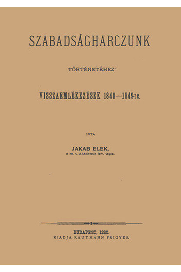 Jakab Elek's book is a collection of memories about the important political and military events of the War of Independence, battles in Transylvania and Hungary, and parliamentary events.
