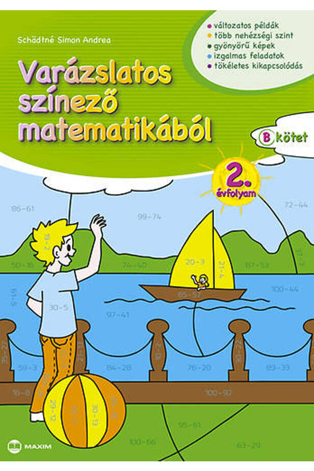 A Varázslatos színező matematikából második évfolyam B kötet című munkafüzet fejleszti az önálló gondolkodást, és alkalmazásra képes, rendszerezett tudást hoz létre. A gyermekek életkorának megfelelő, játékos, tevékenységközpontú, érdeklődést felkeltő feladataival, ábráival hozzájárul a tanulási kedv felkeltéséhez, fenntartásához. Gyakorlatai jól szolgálják a gyermekek fejlesztését, formálják, gazdagítják személyiségüket, gondolkodásukat. Problémafelvetései lehetőséget adnak az önálló, aktív tanulásra és az összefüggések felfedezésére. Feladatai alkalmasak az iskolai tananyag elmélyítésére, rendszerezésére, illetve ismétlésre és biztos számolási készség kialakítására, az iskolában és otthon egyaránt.