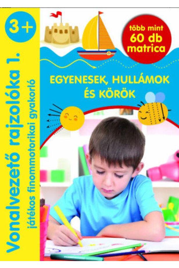 Ebben a foglalkoztatóban az egyenes vonalakra, hullámokra és a körökre épülő rajzolgatnivalók kaptak helyet. Ragaszd be a matricákat, és rajzold meg a cica szőrszálait, a napocska sugarait vagy épp a kisautók kerekeit!